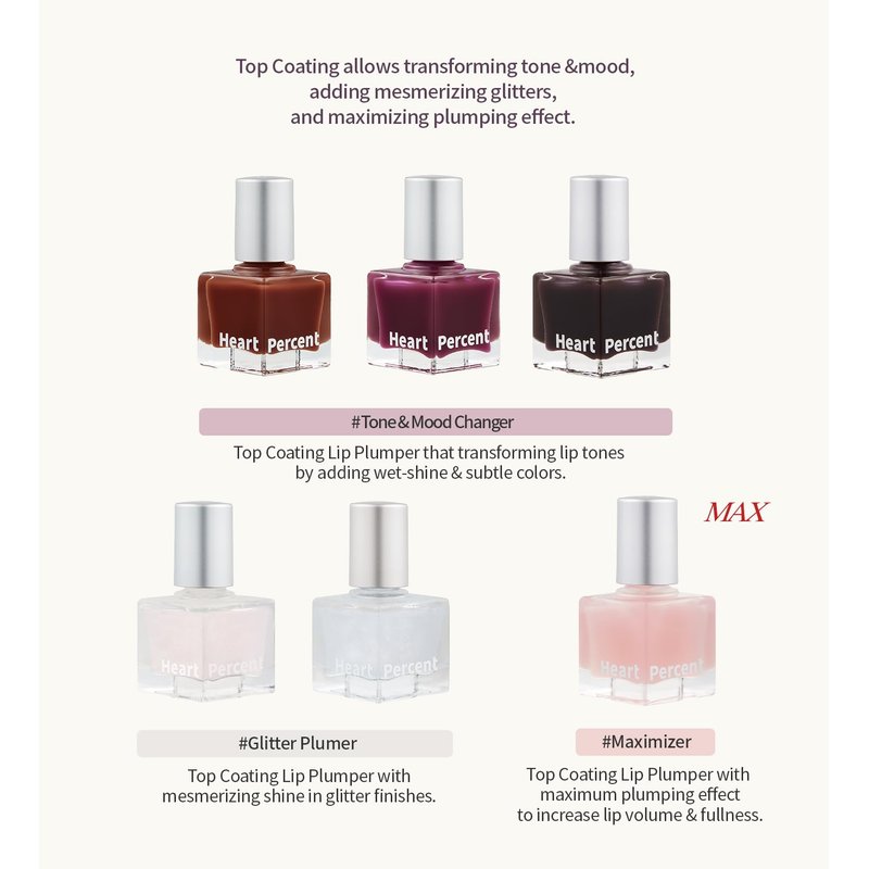 - [Top Coating] One coat locks in color and gloss to complete lip makeup. The glossy top coat delivers exceptional shine and cushiony volume for all types of lips. Top Coating allows transforming tone &mood, adding mesmerizing glitters, and maximizing plumping effect.