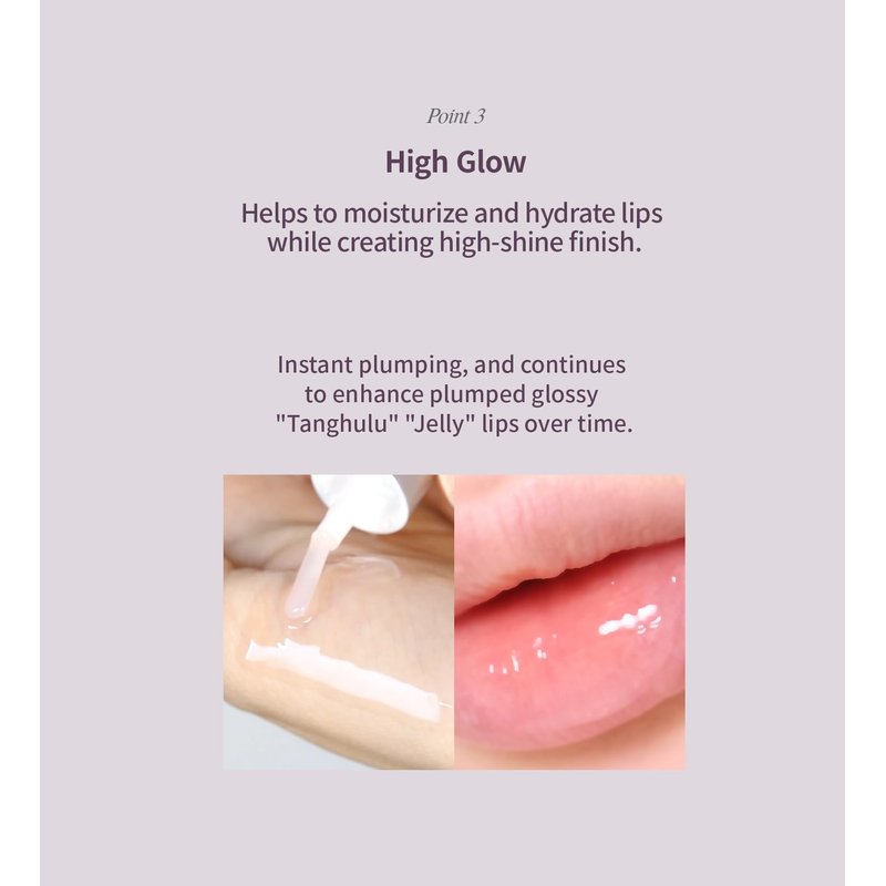 - [High Glow] Helps to moisturize and hydrate lips while creating high-shine finish. Instant plumping, and continues to enhance plumped glossy "Bunny Tongue" "Tanghulu" "Jelly" lips over time.
