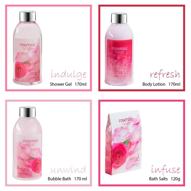 - WHAT'S INCLUDED? This collection of high quality bath and body essentials include a 170ml Shower Gel, 170ml Bubble Bath, 170ml Body Lotion, and 120g Bath Salts.