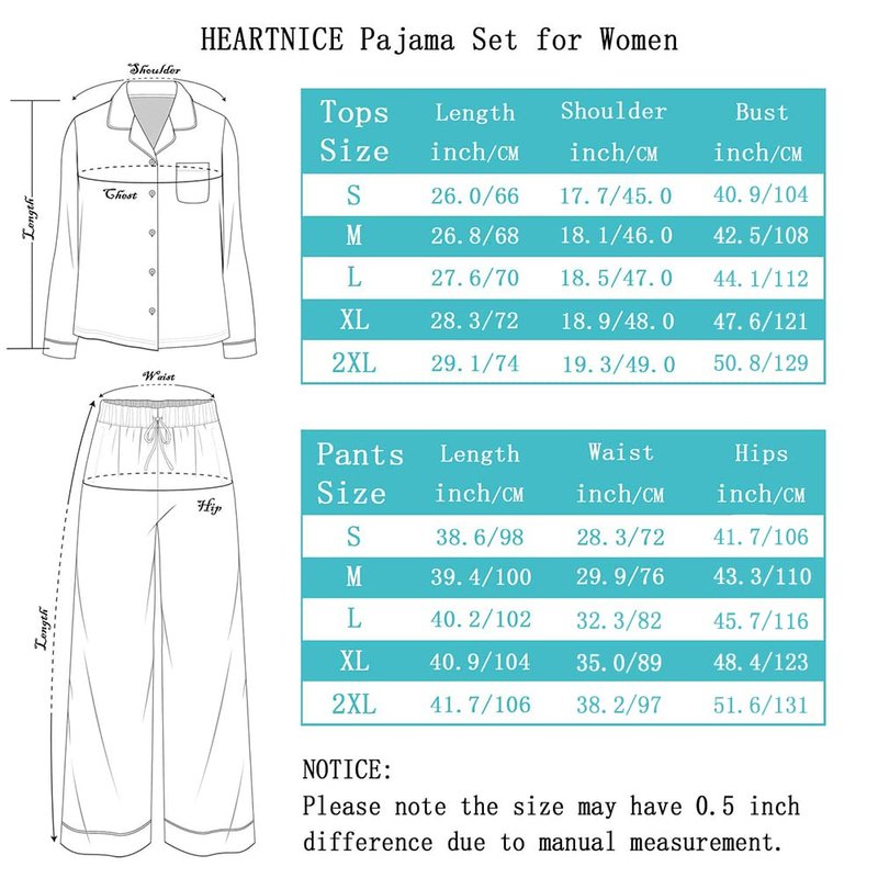 Add a little happiness to life! Wear a Clothing that makes you feel comfortable, Match your favorite style, Wear a different classic fashion. Features Two-Piece soft sleepwear pajamas featuring long sleeve top and pants for relaxed fit. Top: Button-up Tops Bottom: Pajamas pant drawstring elastic waist Brand: HEARTNICE Material: 60% Acrylic 40% Cotton Color: Navy, Black, Gray Mel. ,Living Coral, Burgundy Size: Small, Medium, Large, X-Large, XX-Large Suitable for occasions: Sleep, Leisure, Yoga, Lounging Package Information: 1* women Pajama set