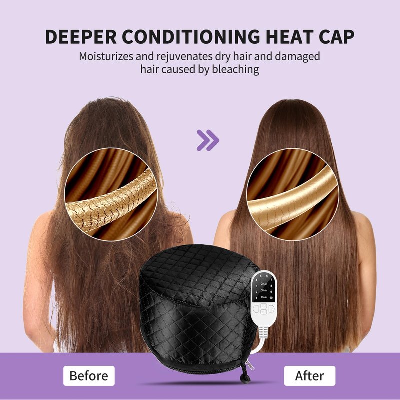 - High Performance - The Hair Steamer Cap is a flame-retardant electronic temperature control heating cap, our unique deep conditioning heated cap offers easy and stylish way to achieve the results of a salon quality conditioning treatment at home. You can feel good about the way you look while conditioning your hair, and dramatically improve results of your hair treatment