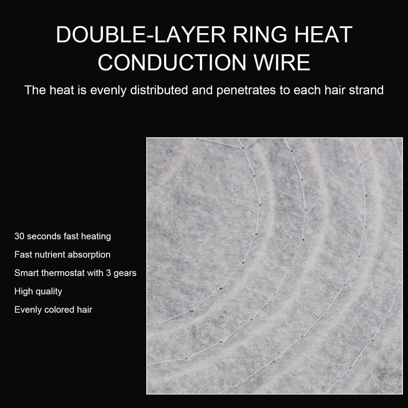 1. Have you ever felt helpless because you couldn't accurately control the temperature using a traditional heating cap? Our products use intelligent temperature control technology and are equipped with adjustable three-level temperature control, allowing you to easily choose the best temperature for your hair type, ensuring the health and safety of your hair.