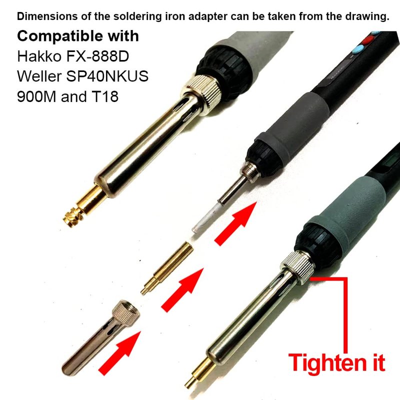 - Heat-set Insert Tips for Hakko FX-888D/Weller SP40NKUS/900M and T18 for example for soldering stations SREMTCH, Hakko, LONOVO, RHAEGON, WaxRhyed and other brands. Dimensions of the soldering iron adapter can be taken from the drawing.