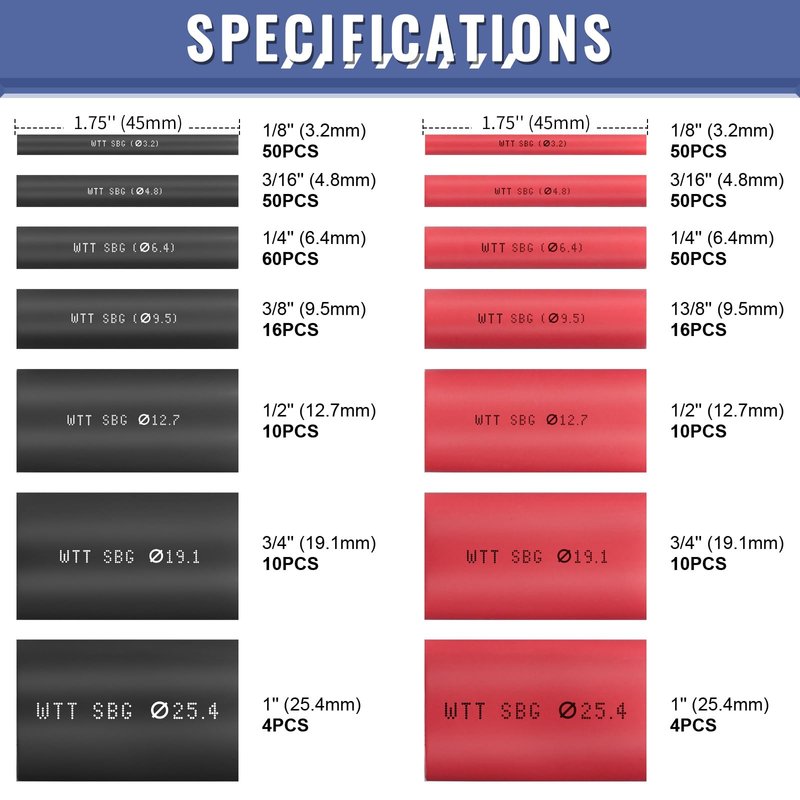 - 【VARIETY OF SIZES】: We offer larger diameter heat shrink tubing ranging from 1/8" to 1". Shrink tubing is precut to 1.75 inches.