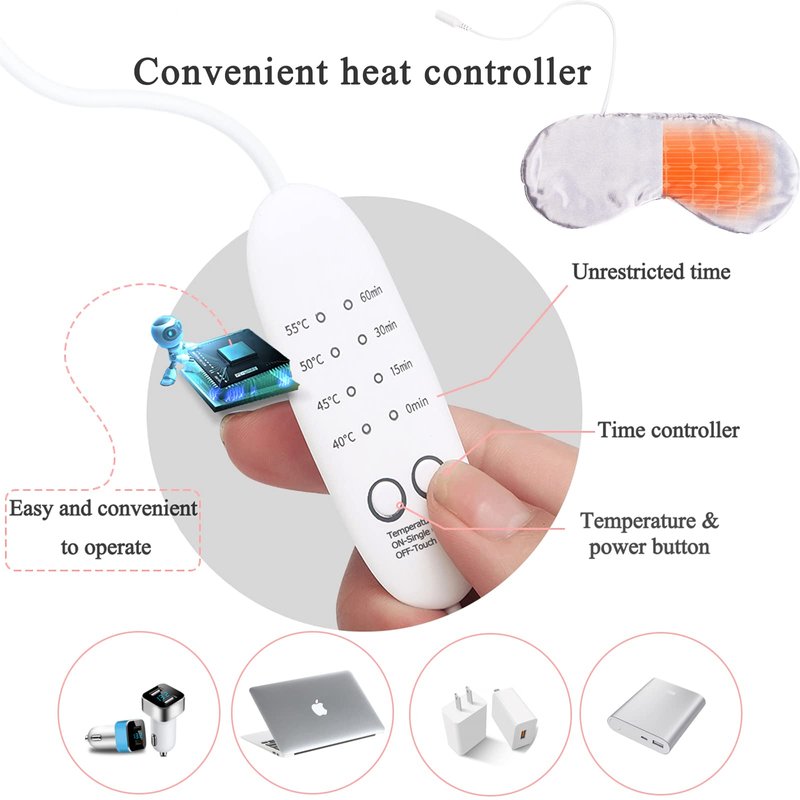- [ Easy and Convenient ] Easy operation of the control board, 7F long cord, powered by PC USB port and power bank, free to relax wherever you go, convenient to get the continuous warm to relieve your eye strain and Blepharitis, great help to reduce dry eye or stye.