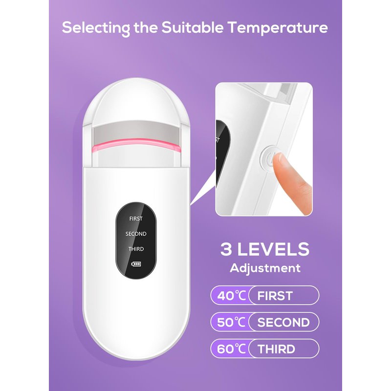 Heated Lash Curler, 2023 New Version Electric Eyelash Curler Rechargeable Professional 3 Heating Modes & Battery Life Display for Women Stunning Lashes in Minutes, Heated-Lash-Curler-Mini-Portable
