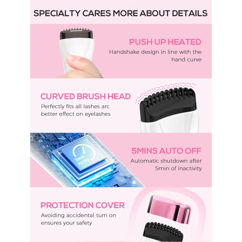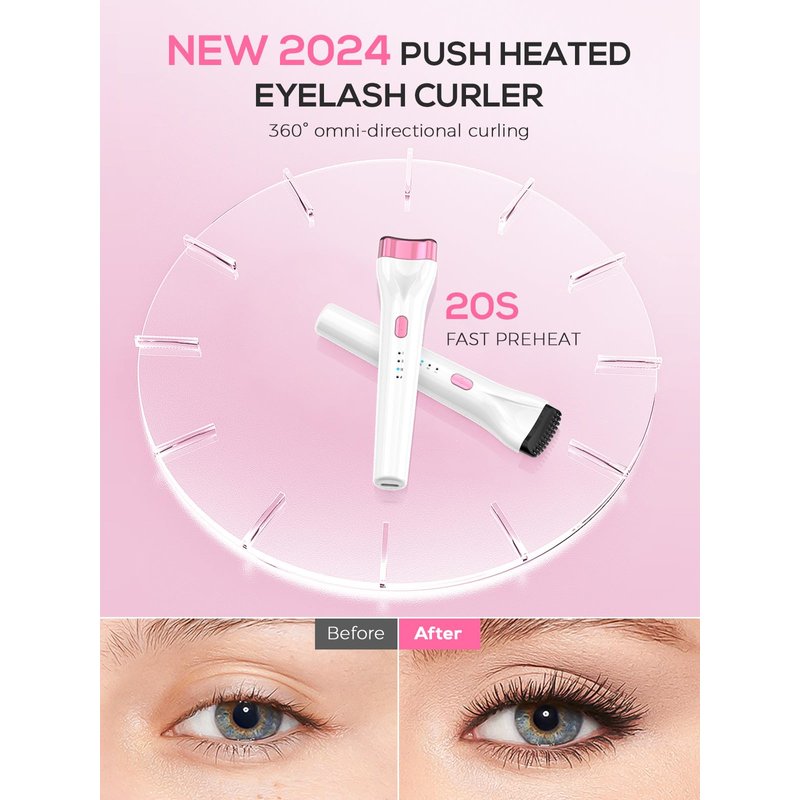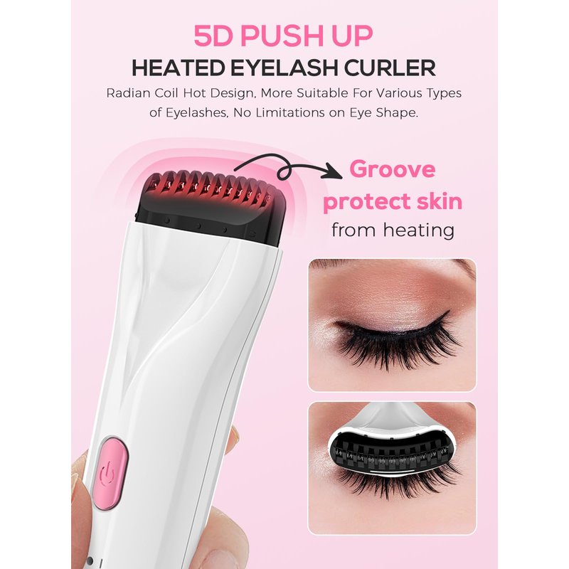 Heated Lash Curler Wand, 2024 New 5D Push Heated Eyelash Curler and Rechargeable 3 Heat Modes Anti-Burn & 5 Mins Power 0ff for Professional Lasting Eyelashes Results, Heated-Eyelash-Curler-Electric