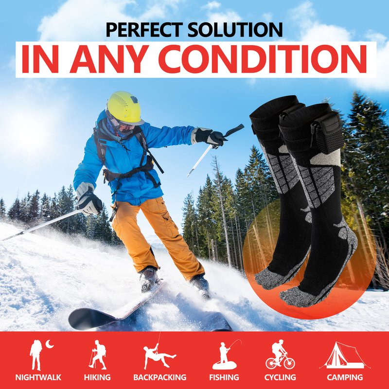 - ❄️ GIVE THIS GIFT TO THOSE WHO LOVE OUTDOOR ACTIVITIES, EVEN DURING THE WINTER OR CHILLY WEATHER. Ingeniously designed heated ski socks women have a hidden pouch at the top of the socks to hold the battery compartment discreetly. No ugly embarrassing flaps hanging on the sides. The heating socks for men give warmth and relief for chronically cold feet from poor circulation, arthritis, cold weather or simply just wanting more comfort and warmth.