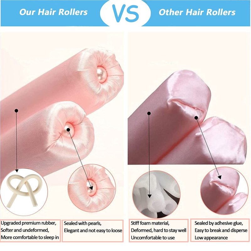3.The hair curling rod is upgraded to premium rubber material which is more flexible and stretchable compared with old stiff foam version. The curling rod is non-deformable with no folding crease no matter how you fold it. It is softer and more comfortable to sleep in. The hair will be fixed tightly without slipping.