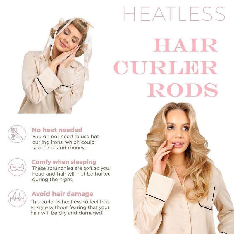 - 🌟【Easy to Use】These heatless hair curls are convenient and comfortable. Just wrap your hair around the curling rod, bend it to secure, and fasten with the long ribbon. These Curling Rods stay in place while your hair air-dries and are even comfortable enough to sleep in.