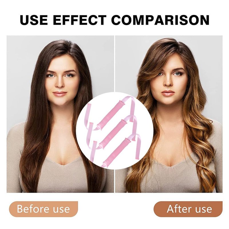 3 PCS heatless hair curling rod headband for all hair types easy to use comfortable satin heatless hair curlers Specification: Item Type: Heatless hair curling rod Color: Pink Material: Satin and soft material Package Include: 3 x heatless hair curlers with long ribbon Features: Easy to Use and be suitable for most length and types of hair Upgraded, soft and comfortable material, no damage for your hair Lightweight and easy to carry. You can use it when you are studying or sleeping The latest and trendy heatless hair curler makes you have healthier and more fashionable hairstyle