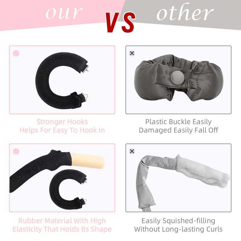 - 【COMFORTABLE】This heatless hair roller is wrapped with soft flannel , flexi structure can be adjusted to a comforable position,and it is design with hook that not easy to fall off when you're sleeping. It is super gentle on hair and very comfortable for sleeping.