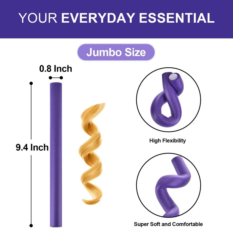 Heatless Hair Curlers Jumbo Flexible Curling Rods Bendable Twist Flexirod Soft Foam No Heat Hair Rollers for Long Medium Hair