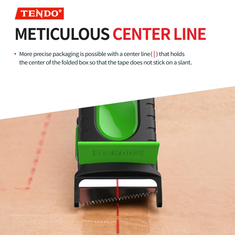 - CENTER LINE ON THE BLADE – Center line allows easy centering of the box and tape, allowing for a clean taping that is not skewed to one side.