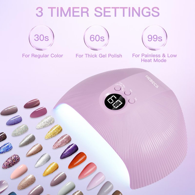 - 【Get Salon-quality Nails at Home】 Experience salon-quality manicures at home with HEBECA 75W UV LED Nail Lamp. X33 nail lamp with 30pcs high-power UV LED beads, uses safe 365 nm UV light + 405 nm LED light wavelengths to ensure to cure both uv and led gels in 30s - 60s and also your eyes and skin stay protected while using. Offering 75W maximum power, powerful UV lamp for UV gel nails helps to achieve quick drying and fast curing.