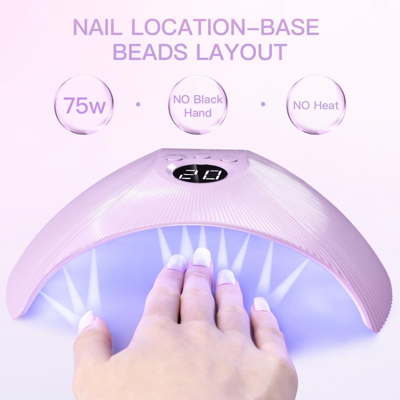 Experience salon-quality manicures at home with HEBECA 75W UV LED Nail Lamp. X33 nail lamp with 30pcs high-power UV LED beads, uses safe 365 nm UV light + 405 nm LED light wavelengths to ensure to cure both uv and led gels in 30s - 60s and also your eyes and skin stay protected while using. Offering 75W maximum power, powerful UV lamp for UV gel nails helps to achieve quick drying and fast curing.