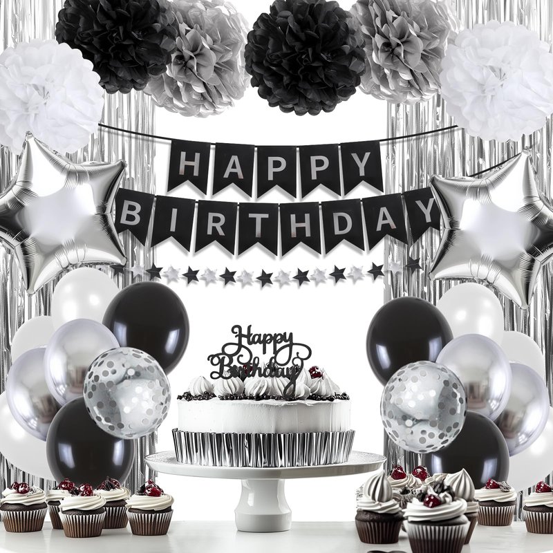 - Vibrant Black and Silver Color: Add a lively touch to your birthday party with our black and silver decorations. Showcasing an assortment of eye-catching and vibrant tones, our decorations will create a lively and festive atmosphere that your friends and family will love