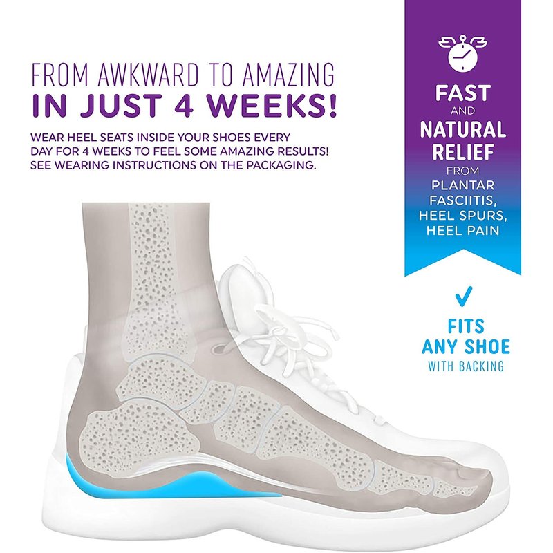 HTP Heel Seats are a one of a kind product developed by the world renowned foot doctor Art Smuckler, C. Ped, OST. Trusted by famous professional athletes such as John Starks and Jason Kidd. They are clinically proven to help with heel pain. Based on patented Fascia-Bar technology which applies therapeutic acupressure to plantar fascia ligament to help with heel pain caused by plantar fasciitis and heel spurs. Based on over 30 years of research and design. 100% Guaranteed to work for you by an extended 120 day return policy from our California headquarters. Try the Heel Seats today! Size medium Heel Seats fit women's shoe sizes 6.5-10 and men's 5-8.