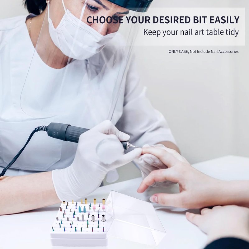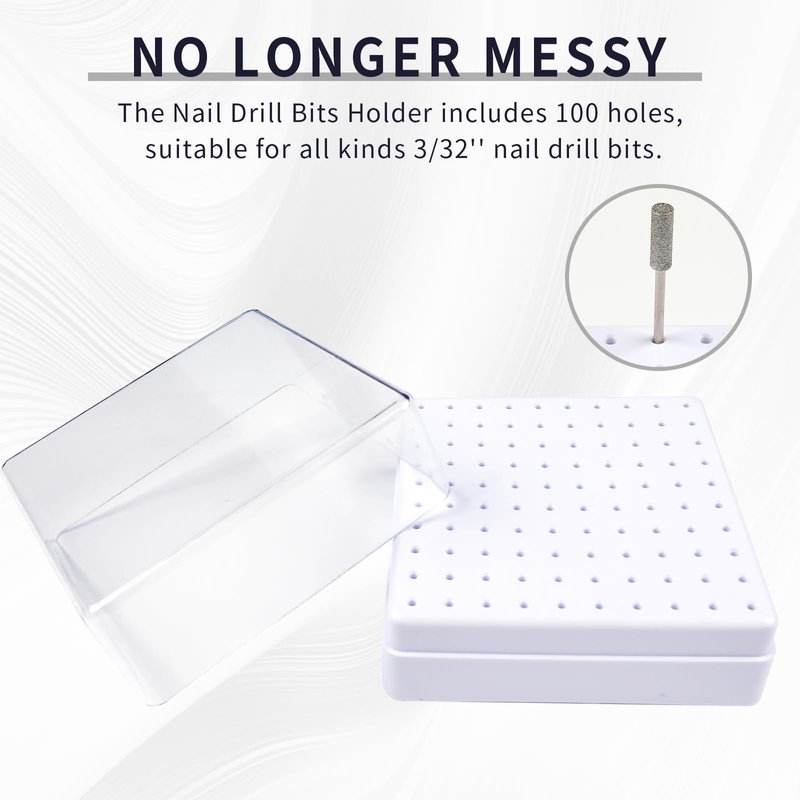 - 【100 Holes Nail Drill Bit Holder】The Nail Drill Bits Holder includes 100 holes, suitable for all kinds 3/32'' nail drill bits. This nail bit holder can be used to store 3/32'' nail drill bits, 3/32'' carbide nail drill bits, ceramic nail drill bit, and e-file nail drill bits and so on, keep your desktop neat and beautiful.