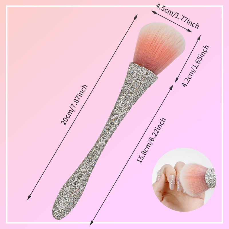 - Premium Material: The Dust Brush for Acrylic Nails is made of high-quality nylon bristles that are soft and gentle on the skin, durable and easy to clean, making the brush long-lasting and hygienic. The handle with rhinestones provides a comfortable grip, making it easy to maneuver and control