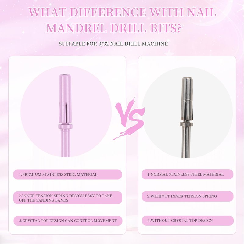- 【Small Diameter Sanding Bit Set】small sanding bands and small mandrel bits are designed for precise and detailed nail shaping, and provide optimal finesse when preparing the underside of gel. Whether you need to file the edges, remove excess length, or shape the surface of the nails, this set provides the necessary precision and control when preparing the underside of gel extensions or working on petite nails.