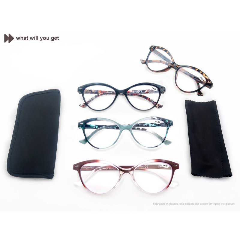 - {4 Pack Women Reading Glasses}:4 Pack Cateye reading glasses women readers,Including 4 pouch and 1 cloth,gives you great value for a high quality product