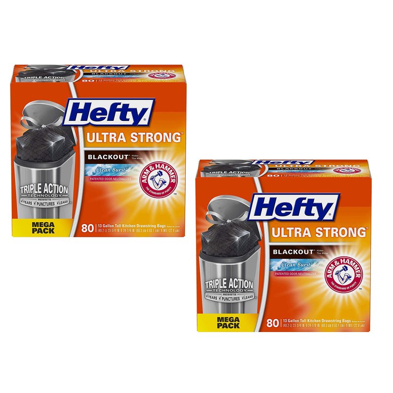 Hefty Ultra Strong Blackout Trash Bags (Clean Burst, Tall Kitchen Drawstring, 13 Gallon, 80 Count) (2 Pack(80 Count))