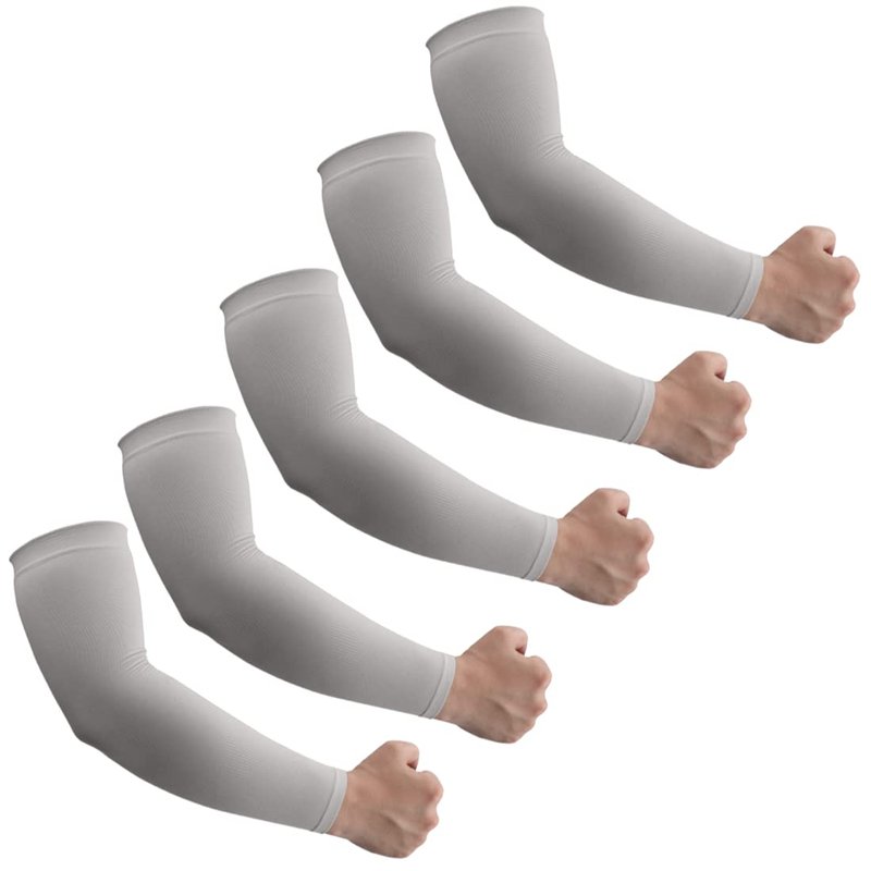 HEGCOIIE 5 Pairs Arm Sleeves for Men and Women - Compression Sleeves - Cooling Sun Sleeve to Arm for Basketball Golf Football (Gray)