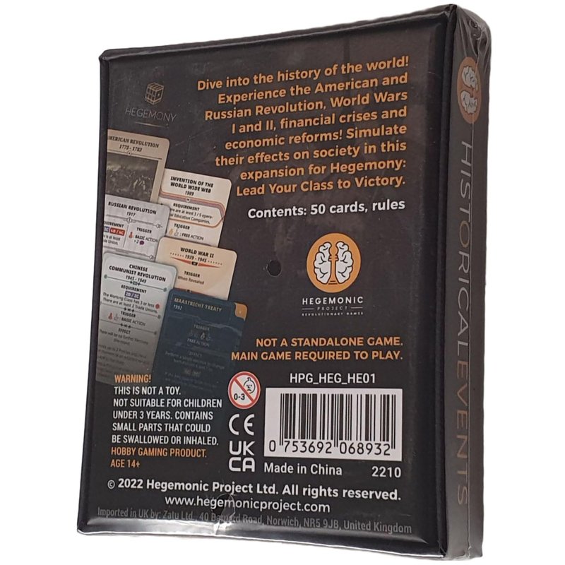 - HISTORICAL EVENTS: Hegemony: Historical Events is an expansion to the highly successful Hegemony: Lead Your Class to Victory. Dive into the history of the world.