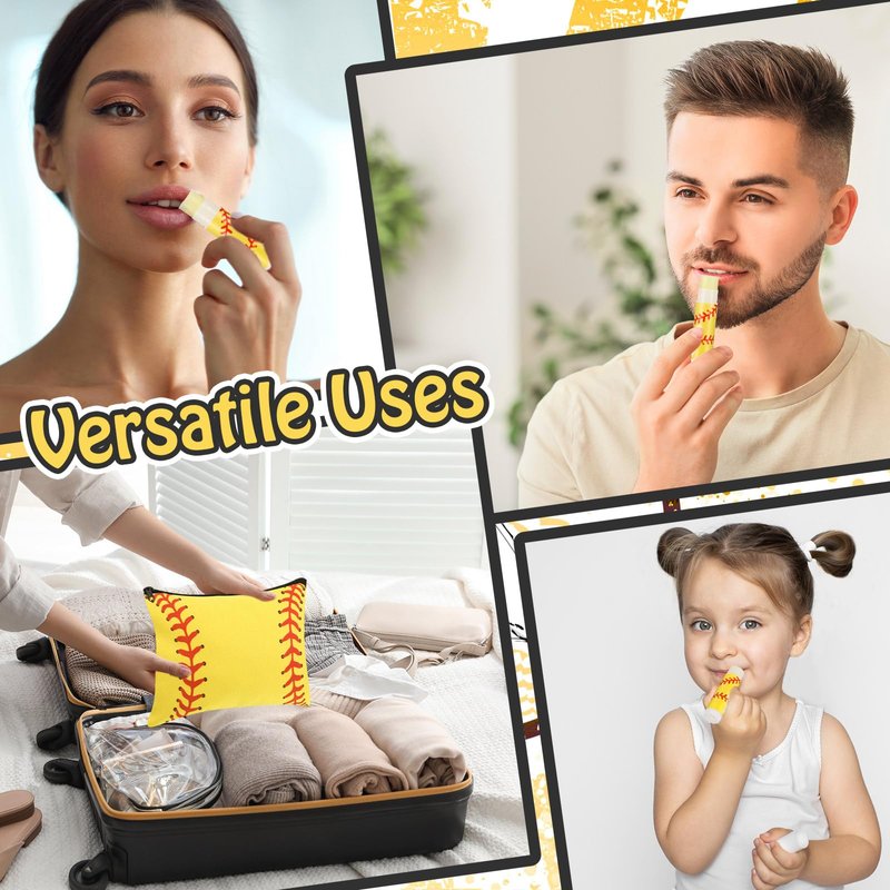 - Proper Size, Easy to Carry: the softball themed lip balm is approx. 2.62 inches/ 6.65 cm high and approx. 0.65 inches/ 1.65 cm in diameter, which is compact and portable to carry; The softball makeup bag is approx. 7.87 X 5.91 inches/ 20 x 15 cm, suitable size for storing your lip balm, lipstick holder keychain, hair scrunchies and other items