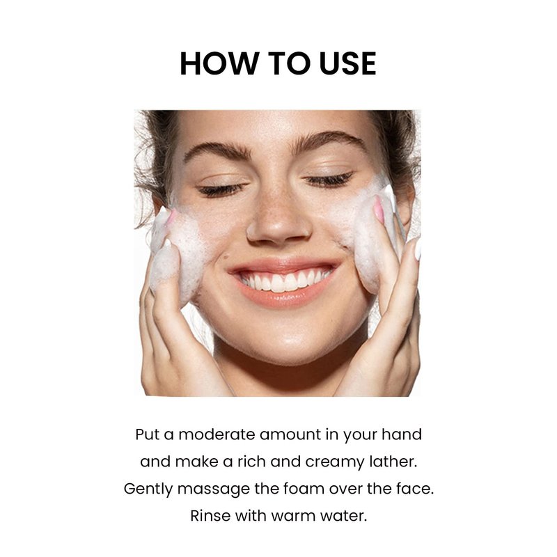 - How to use: Put a moderate amount in your hand and rub your palms together to make a thick foam. Gently massage the foam over the face and rinse with warm water.