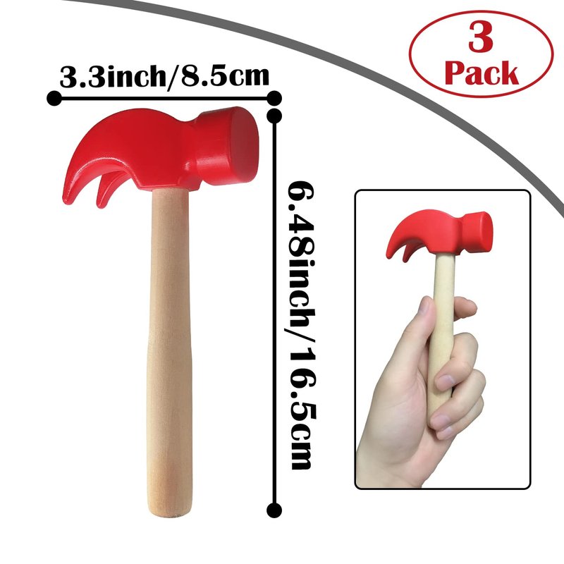 - What you will get: The toy hammer set includes 3 wooden hammers, which is enough to meet children's play needs. The red colors kids hammer are vivid and eye catching, which is easy to attract little ones' attention