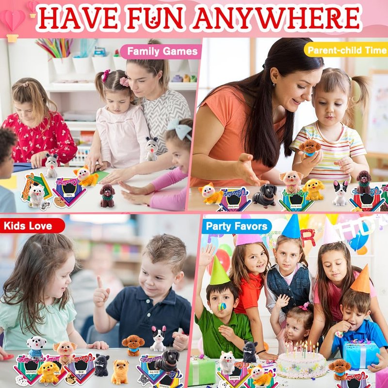 Heirloom Haven 24pcs Valentines Day Gift Cards with Toys, Valentines Toys for Kids Miniature Resin Puppy Dog Figurines Greeting Cards for Classroom Exchange Prizes, Valentine Party Favors Supply