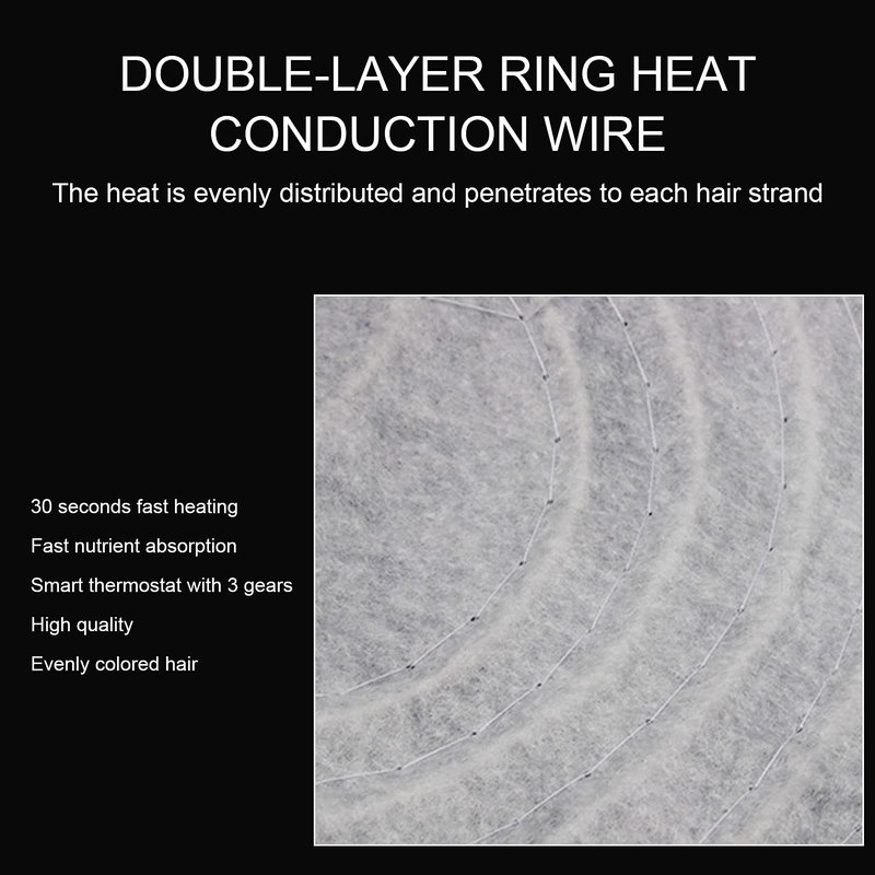 - Intelligent Hair Care Hat : Intelligent temperature control, 4‑row cable design, outer layer of silicone material. Three‑speed temperature control technology, the thermostat automatically cuts off the power supply to ensure safe use. Fast heating, intelligent temperature control, waterproof inner tank, bright color.