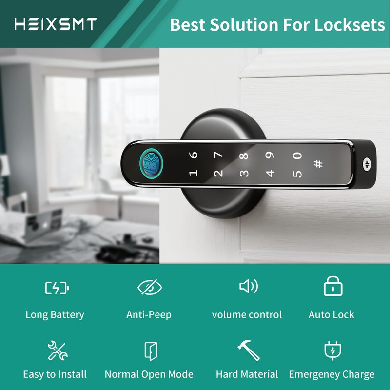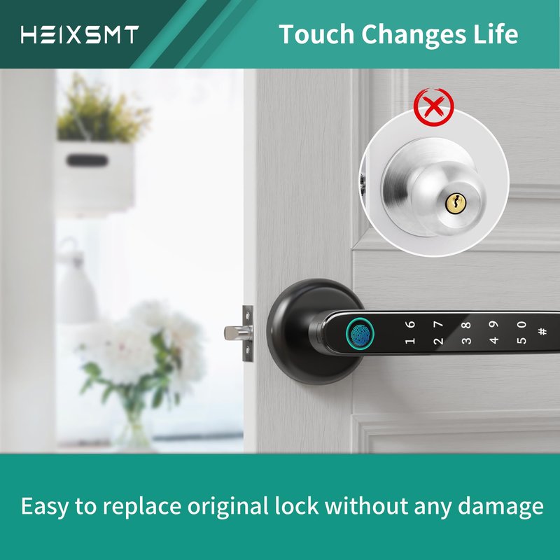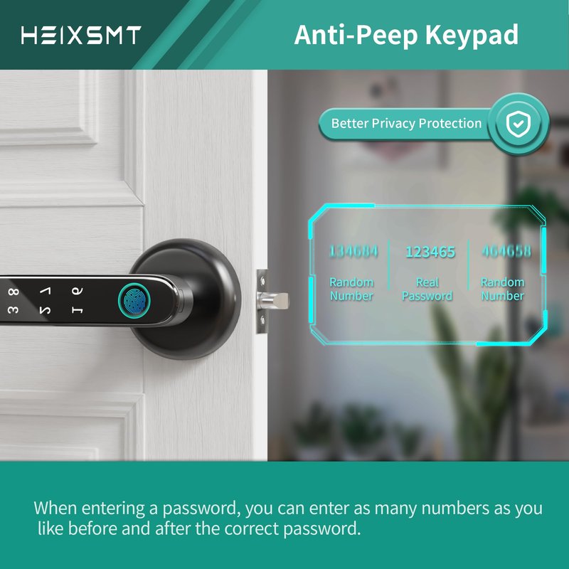 HEIXSMT Fingerprint Door Knob Biometric Door Lock with Code Keyless Entry Door Handle for Bedroom Home Hotel Office Apartment Black