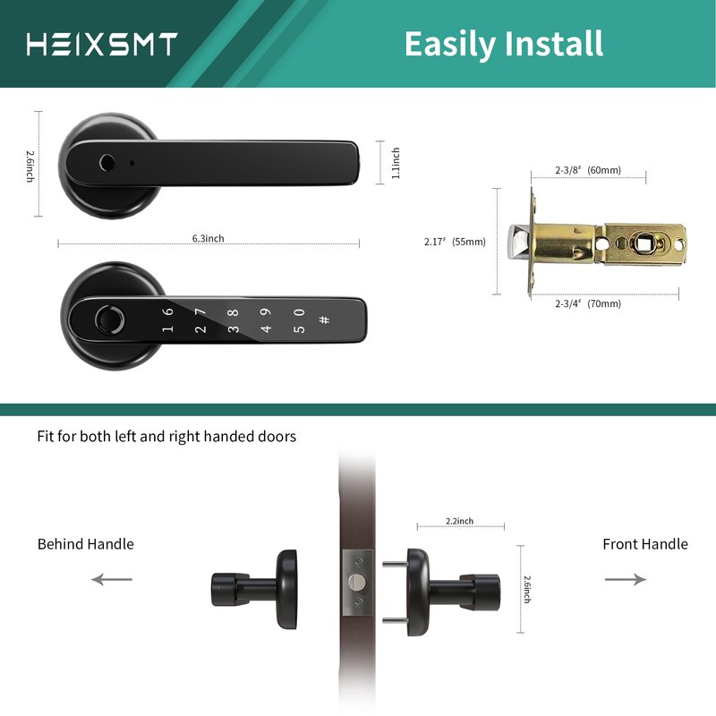 - 🔒【EASY INSTALLATION】: Keyless entry door lock is designed to fit US standard door, Backset 2-3/8″(60mm) and 2-1/8″(70mm), door thicknesses from 1-3/8'' to 2-1/8''(30mm -55mm). the lock just with a small screwdriver quickly and easily install. Fit both left handed and right handed doors(Suitable for indoor and outdoor doors).