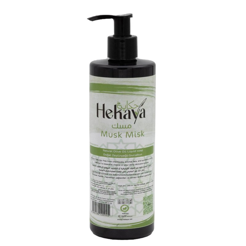 Hekaya Natural Liquid Soap, Olive oil &Coconut Oil soap for Cleansing, Hydration & Soft Skin.,Sulfate-Free, Paraben-Free,Handmade, Scented (Musk),Pump Bottle Dispenser -(13.5 Fl Oz / 400 mL)