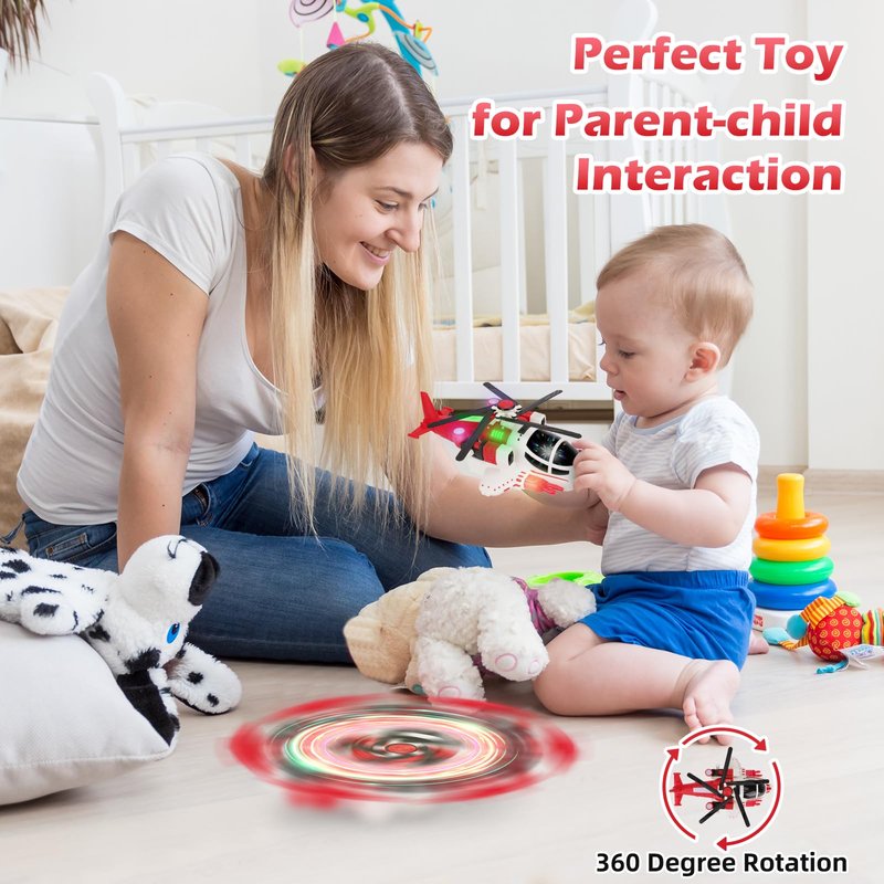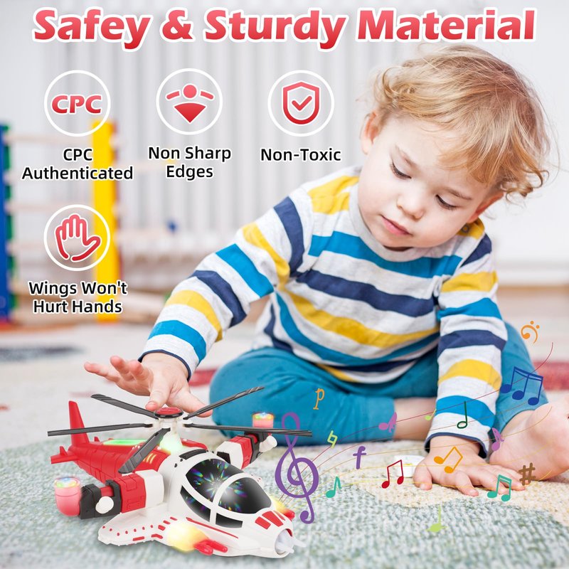 - High Quality-Helicopter toy airplane is made of solid materials and high quality. The whole body is matched with red and black colors, which looks very classical. The body is made of safe and harmless high-quality plastic, which will not cause harm to children's skin. There are no sharp parts on the whole. Even if the propeller is touched by the child during transportation, there is no need to worry about scratching the child