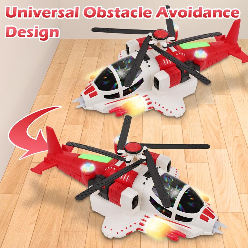 - Multifunctional Helicopter Toy- In addition to being able to run like ordinary toys, this toy airplane has a circular bracket installed at the bottom to help it rotate 360 degrees, obstacle avoidance component is installed on the head. When it encounters an obstacle during the forward process, it will automatically change direction. It is novel and fun, bringing children more game experience