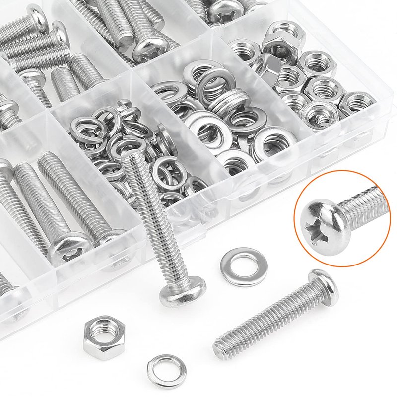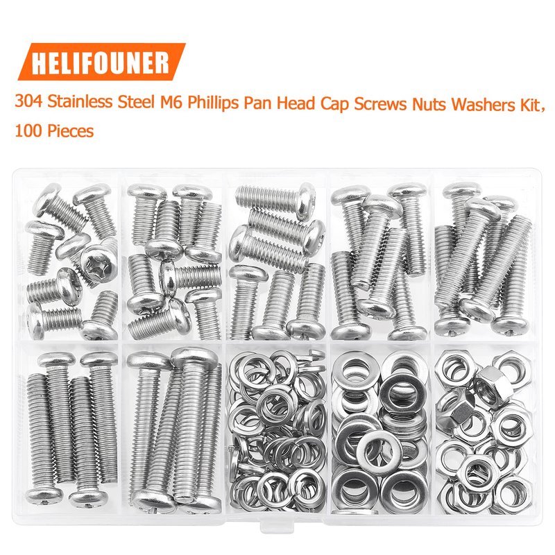 【Package Quantity: 100 Pieces M6 Phillips Pan Head Machine Screws, Lock Washers, Flat Washers and Nuts】