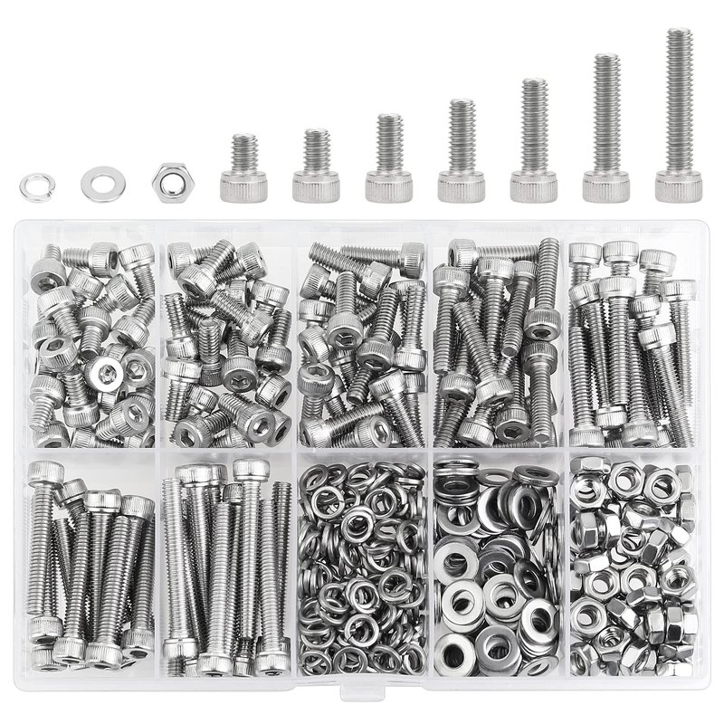 【Package Quantity: 350 Pieces M4 Hex Socket Cap Screws, Lock washers, Flat Washers and Nuts】