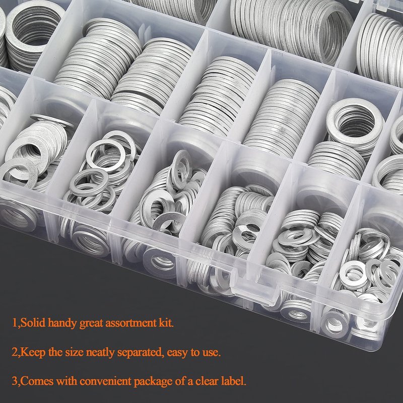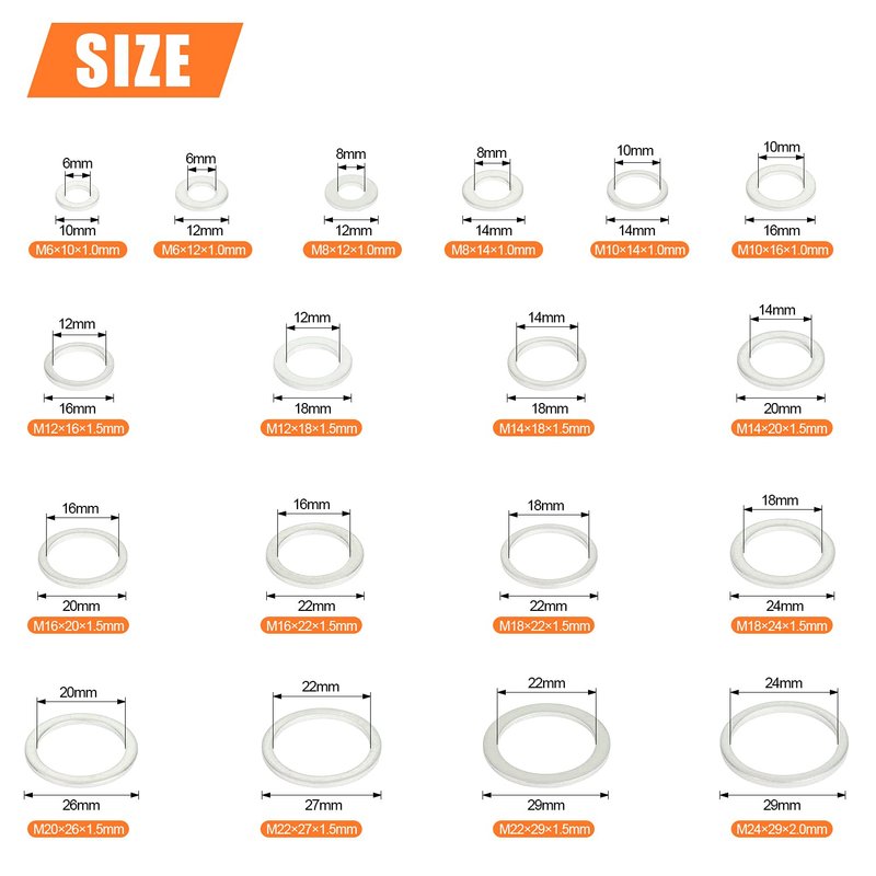 - 【Sizes】M6 M8 M10 M12 M14 M16 M18 M20 M22 M24, total 560 pieces/18 sizes of the most commonly used aluminum washers in a plastic case, different size can satisfy your different needs.