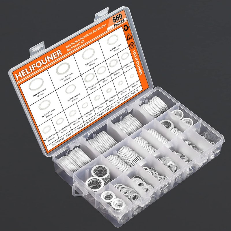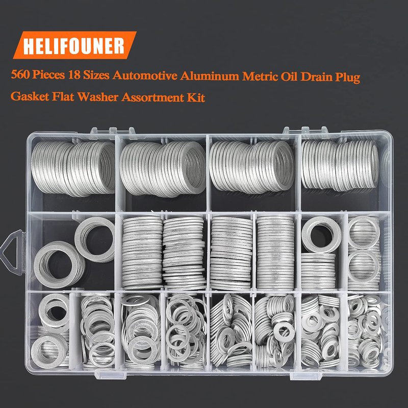 HELIFOUNER 560 Pieces 18 Sizes Aluminum Drain Plug Gaskets.