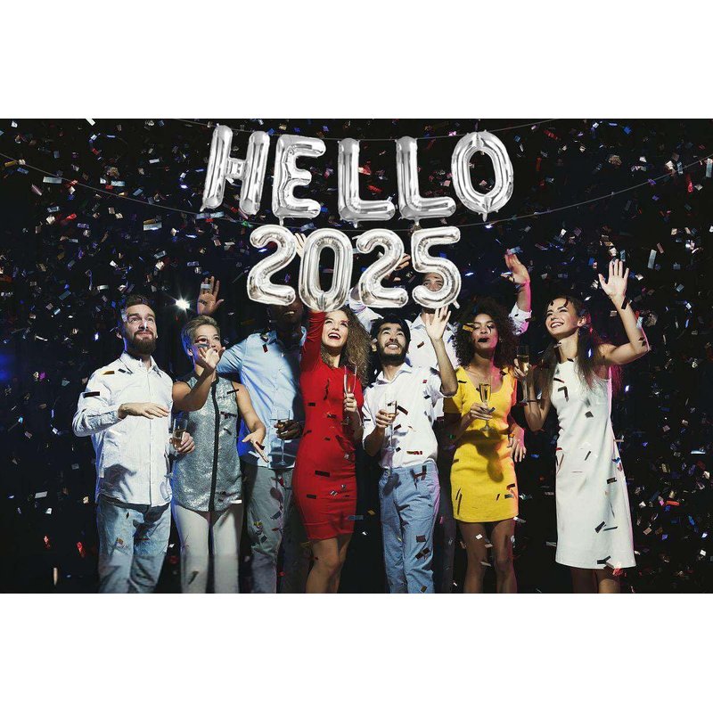 - Package Included: Big 16 INCH Silver Hello 2025 Foil Numbers Balloons,1 Inflatable Straw,1 Ribbon .Hello 2025 Silver Balloons for New Year Eve Party Supplies 2025, New Years Decorations 2025, Christmas Decorations.