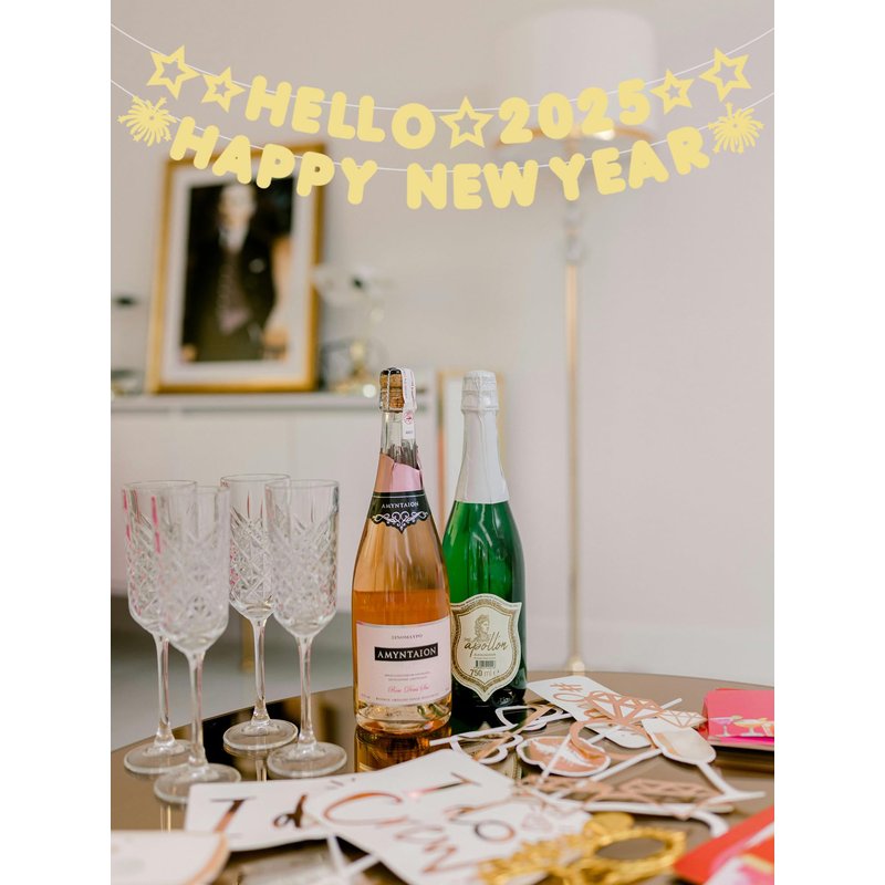 Welcome 2025 with this sparkling gold "Hello 2025" banner, designed to elevate your New Year’s Eve celebrations. Made from glitter paper, this lightweight yet durable garland shines brightly, creating a festive atmosphere for your party. Pre-assembled and easy to hang, this decoration is perfect for walls, doorways, or as a stunning photo booth backdrop. Its versatile design makes it suitable for indoor or outdoor use, ensuring your celebration is filled with joy and style. Whether you’re hosting a family gathering or a grand event, this festive banner is an essential addition to your New Year’s decor.