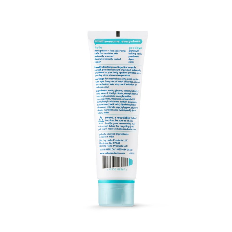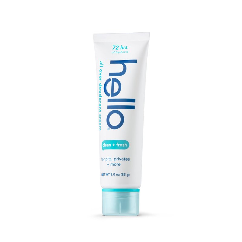 - one 3 oz hello Clean + Fresh Aluminum Free All Over Deodorant Cream for men and women