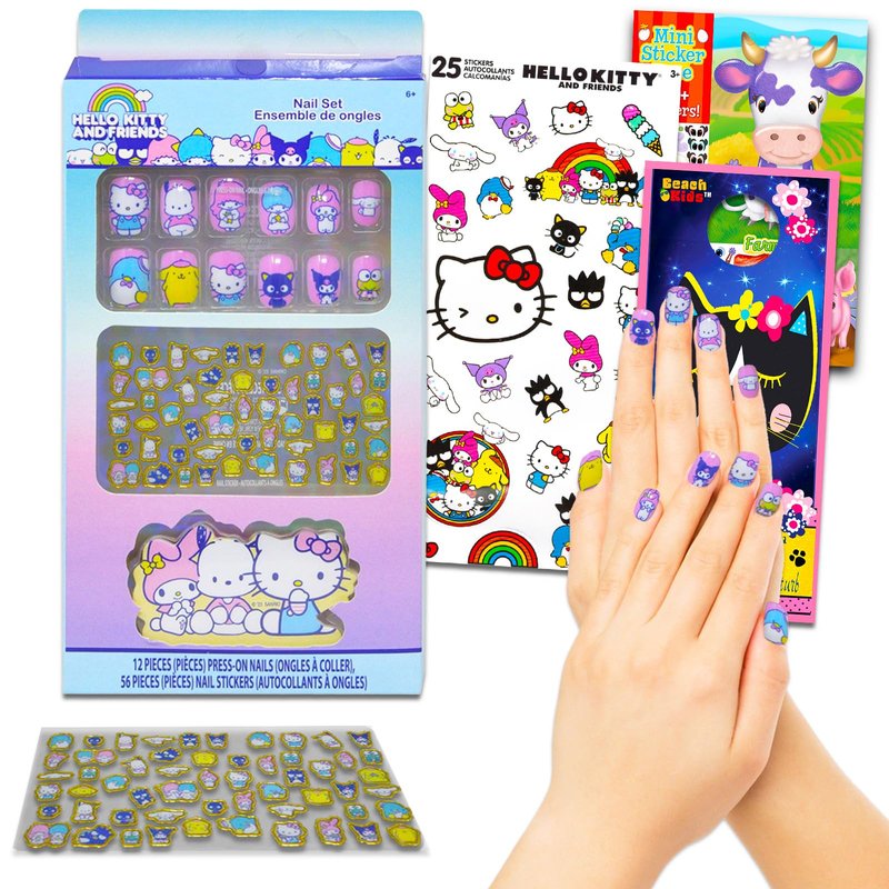 - Crenstone Exclusive Hello Kitty and Friends Press-On Nails for Kids - Bundle with 12 Hello Kitty Stick-On Nails Plus Nail Art Stickers, More | Hello Kitty Nail Kit for Girls.