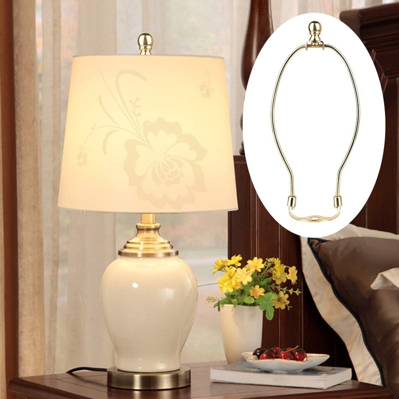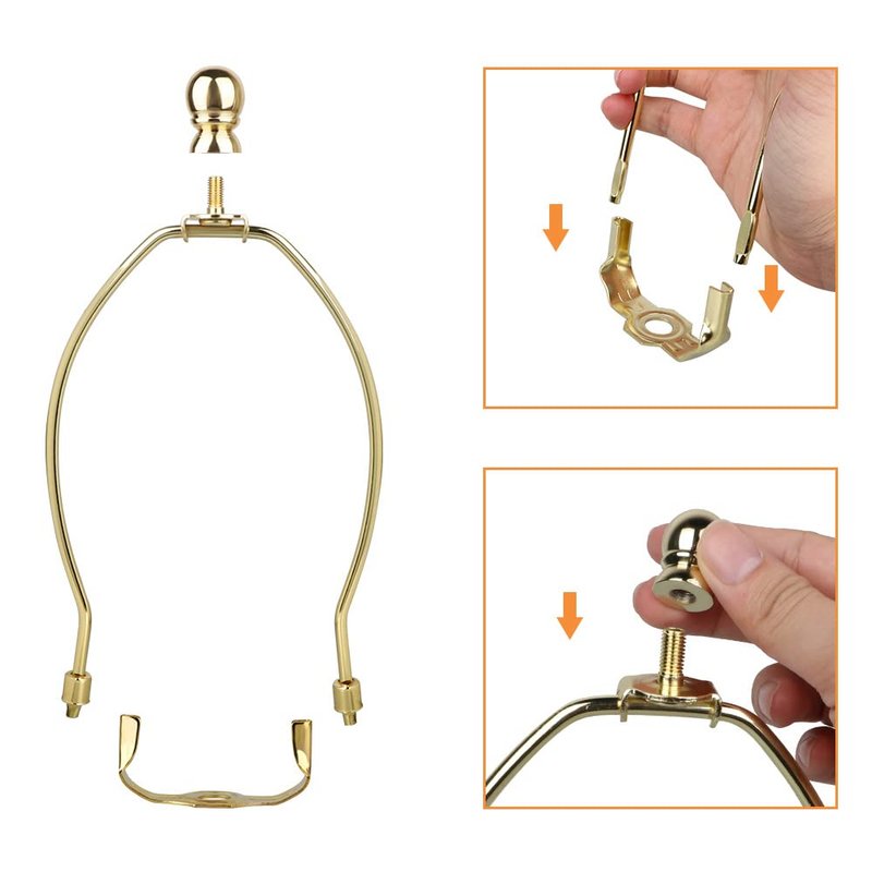 - Premium Material - A full set of gold lampshades harp, the harp and saddle base are both made of metal, polished and electroplated gold to prevent product from oxidation and rust. Round finial design, elegant and easy to match various styles of lampshade.