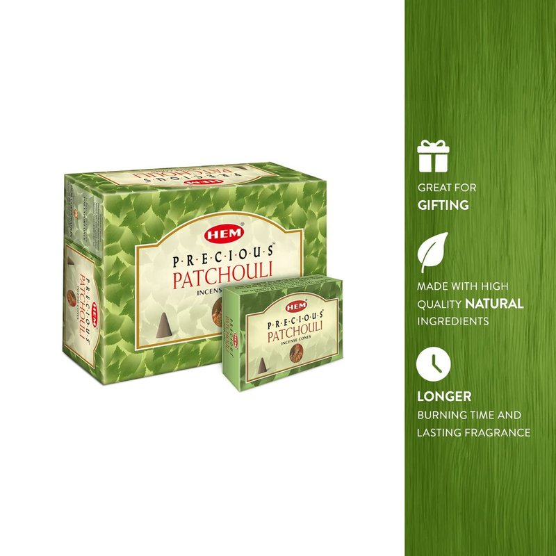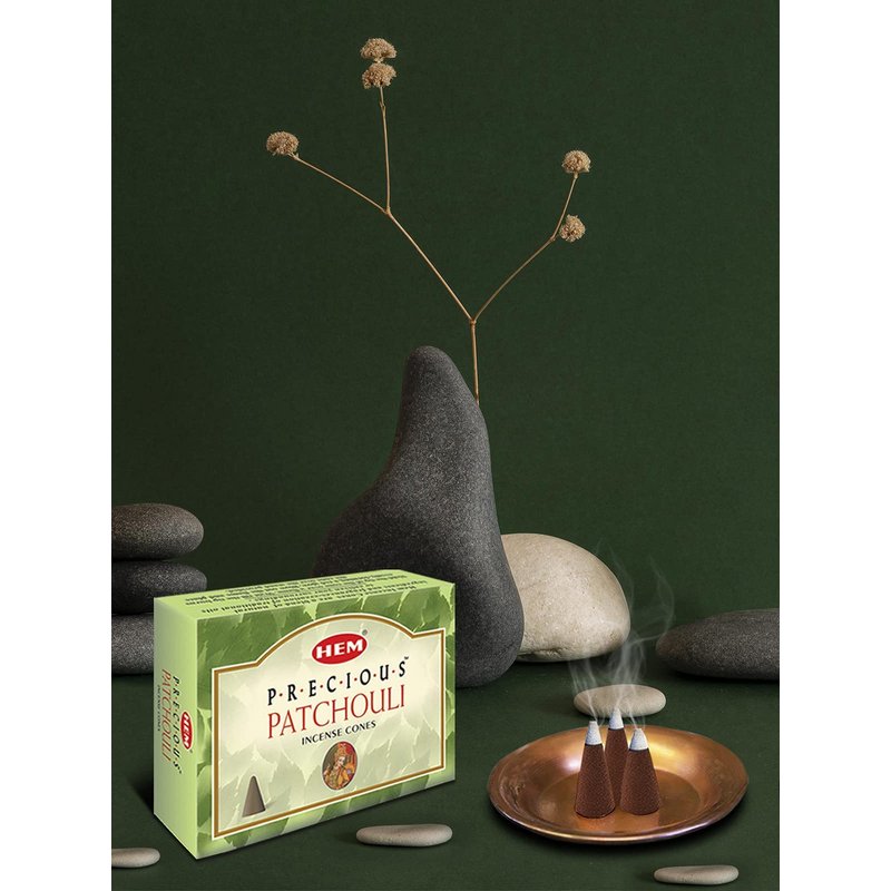 HEM Precious Patchouli Incense Cones | Long Lasting Aroma for Positivity & Pure Air | Aromatherapy Incense for Stress Relief, Air Purifier & Cleansing | Gift Set - Pack of 120 Cones