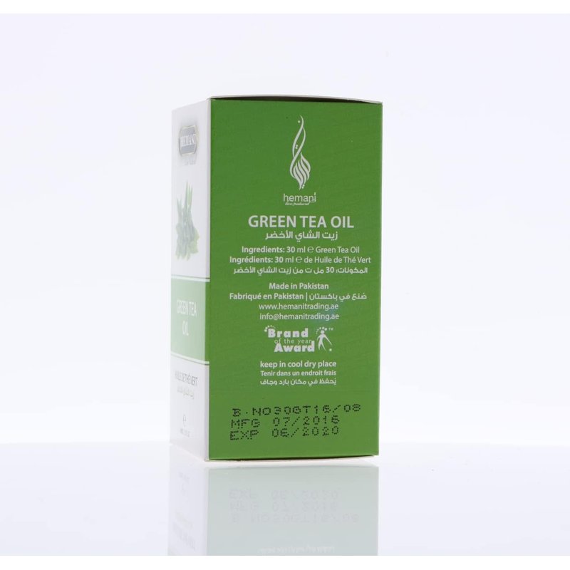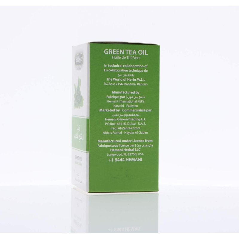 Green Tea Oil by Hemani is a versatile and natural essential oil that has been extracted from the Camellia sinensis plant. This oil is also known as tea seed oil, and it is popularly used in skincare and haircare products. The 30ml bottle of Green Tea Oil by Hemani is an excellent addition to your daily routine. This oil has a light, non-greasy texture that absorbs quickly into your skin and hair, leaving it feeling soft, smooth, and nourished. Green Tea Oil is rich in vitamins A, B, and E, which are essential for maintaining healthy skin and hair. This oil is also an excellent source of free-radical scavengers, which can help to protect your skin and hair from environmental stressors, such as pollution and UV rays. This oil is perfect for all skin types, including oily and acne-prone skin, as it helps to regulate sebum production and reduce the appearance of blemishes. Green Tea Oil also promotes healthy hair growth, reduces hair loss, and adds shine to your hair. Alternate names: tea seed oil, Camellia oil Alternate Use: Can be drizzled over salads, added into drinks: shakes, water, coffee, tea, juice, or can be used as a cooking oil. Can also be used externally, directly on your skin. Directions: External:- Oils can be used topically like massage oils, or hair oils, or you can make your own blend, and use it for aromatherapy. Internal:- Take after a meal not on an empty stomach. Take up to 1/2-1 tsp twice daily. Can be digested by mouth as is, or can be mixed with your food or shakes, or drinks to make it more palatable. NOTE: FOLLOWING OILS ARE EXTERNAL USE ONLY(Not Consumable by Mouth) 1. Aloe oil 2. Bitter Almond oil 3. Camphor oil 4. Eucalyptus oil 5. Henna oil 6. Cade oil 7. Tea Tree Oil